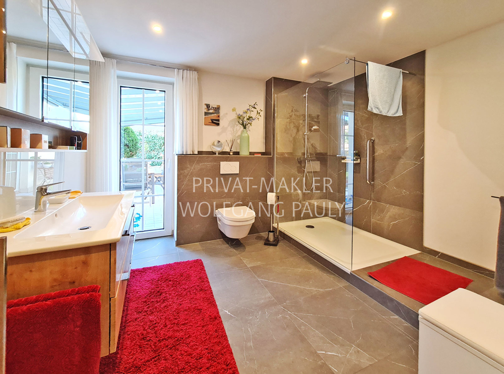Exzellent ausgestattete Eigentümerwohnung im EG mit herrlicher, überdachter Terrasse, angelegtem Garten und der Möglichkeit ein Au-pair/ eine Pflegekraft im angrenzenden Appartement unterbringen zu können.