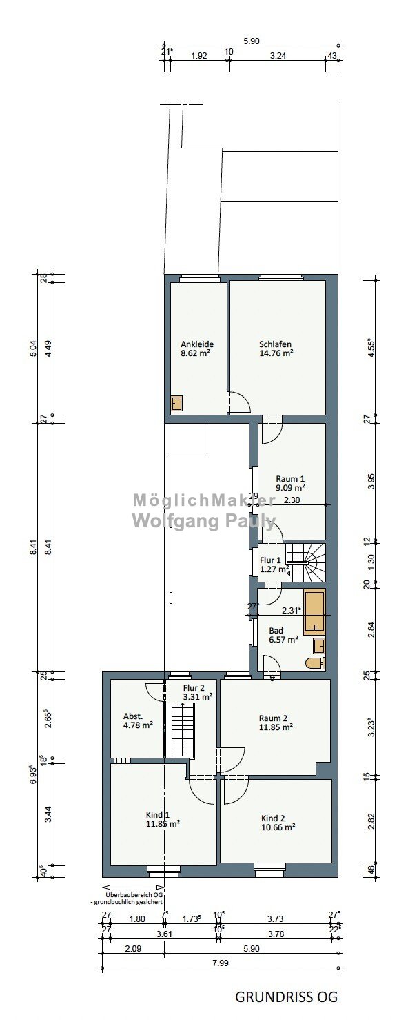 In den folgenden Texten benennen wir das Kellergeschoss als KG, das Erdgeschoss als EG und das Obergeschoss als OG., die Wohnfläche als Wfl und die Zubehörräume als ZR. Alle Maßangaben verstehen sich als Circamaße.