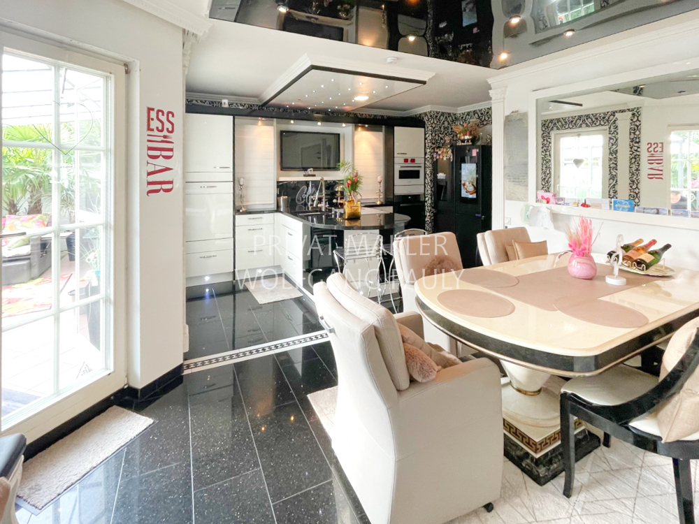 Wohn- und Essbereich großzügig: Herzstück des Hauses mit üppigen Fensterflächen vermittelt einen hellen und freundlichen Wohncharakter. Die offene Küche fügt sich harmonisch ein, von hier gelangt man direkt auf die Terrasse und in den komplett angelegten Garten.