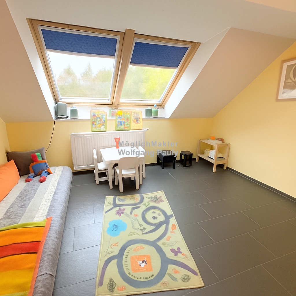 Separiert davon gliedert sich der private Rückzugsbereich ein: Schlafzimmer, Tageslichtbad und Ankleide gehören unmittelbar zur Erdgeschosswohnung, sind aber den Besuchern entzogen und bieten kurze Wege sowie viel Komfort nur für die Bewohner. Im DG warten vier (vielleicht eine komplette zweite Wohnung) weitere Zimmer und ein Abstellraum, die sich je nach Lebenssituation flexibel nutzen lassen; im HWR sind Anschlüsse für eine zweite Küche vorbereitet.