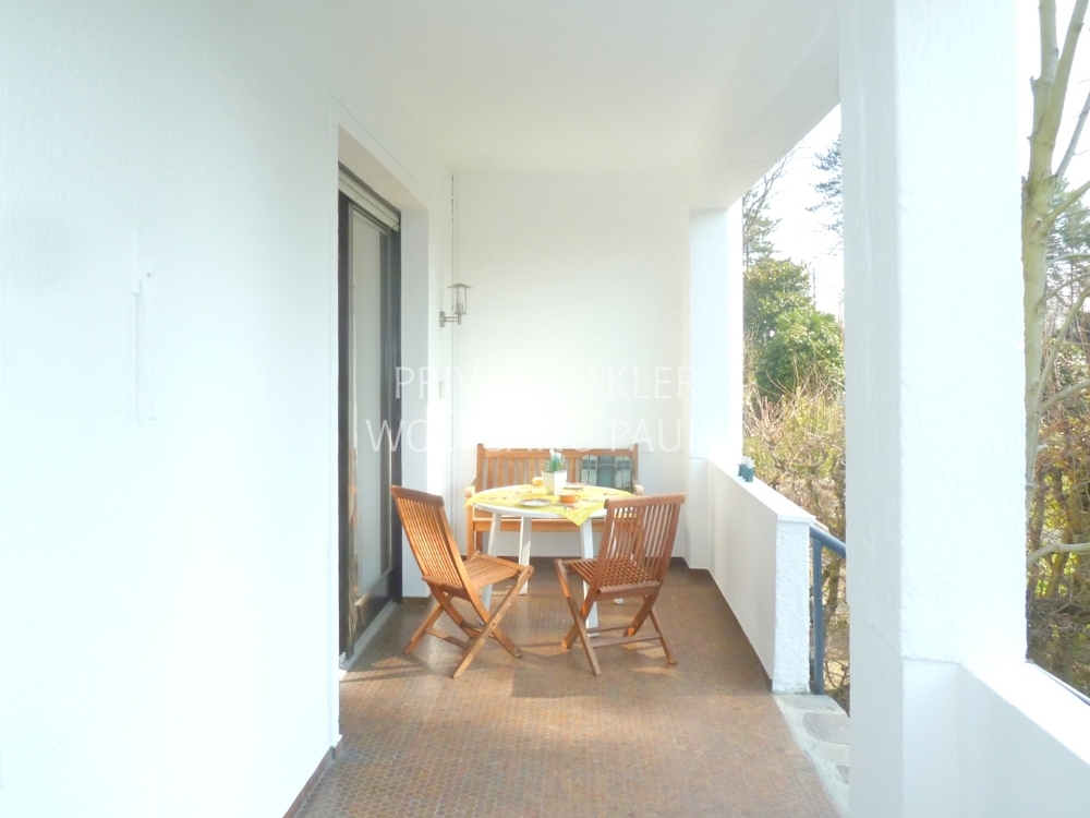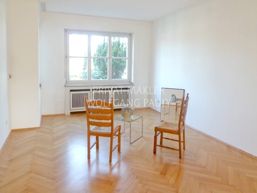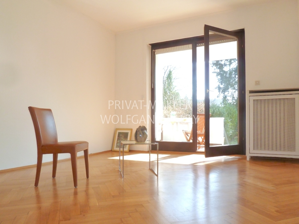 4-Zimmer-Wohnung mit großer Balkon-Terrasse, Treppe zum Garten und im DG ein zusätzliches Gästezimmer als wohnlich ausgestattete Nutzfläche.