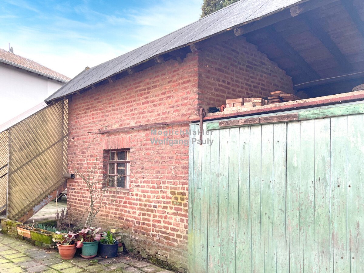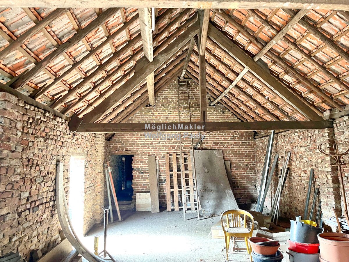 Der denkmalgeschützte Fachwerkhof aus dem Jahr 1680 verleiht dem Ensemble einen unverwechselbaren Charakter und erzählt von der langen Tradition niederrheinischer Baukunst. Direkt daneben befindet sich ein zeitgemäßes Zweifamilienhaus, das vielseitige Wohnmöglichkeiten bietet, also ideales Terrain für Menschen die Ihre besonderen Vorstellungen von Wohnen und Arbeiten in die Tat umsetzen wollen. Abgerundet wird das Anwesen durch Scheune, Hof und großzügige Freiflächen