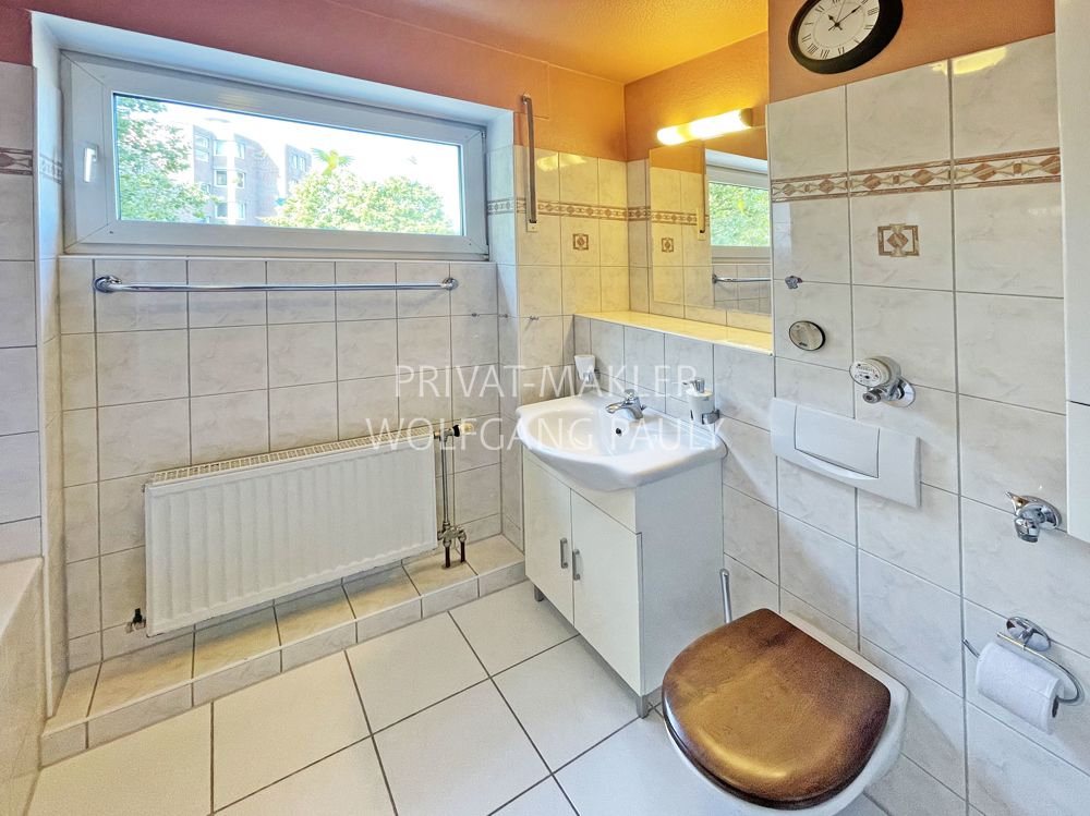 Das komfortable und helle Tageslicht-Bad mit Wanne … auch das G-WC hat ein Fenster. Für Stauraum und Ordnung innerhalb der Wohnung sorgt ein geräumiger Abstellraum und ein zusätzlicher Raum im Keller.