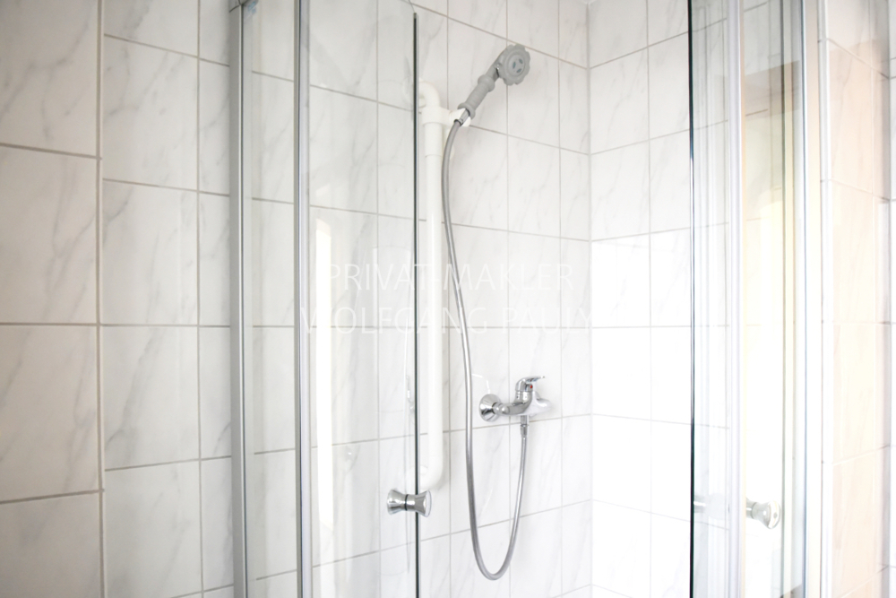 barrierefreies Duschbad mit Sitzfläche im EG und Wannenbad im OG. Das Bad im DG ist vorbereitet.