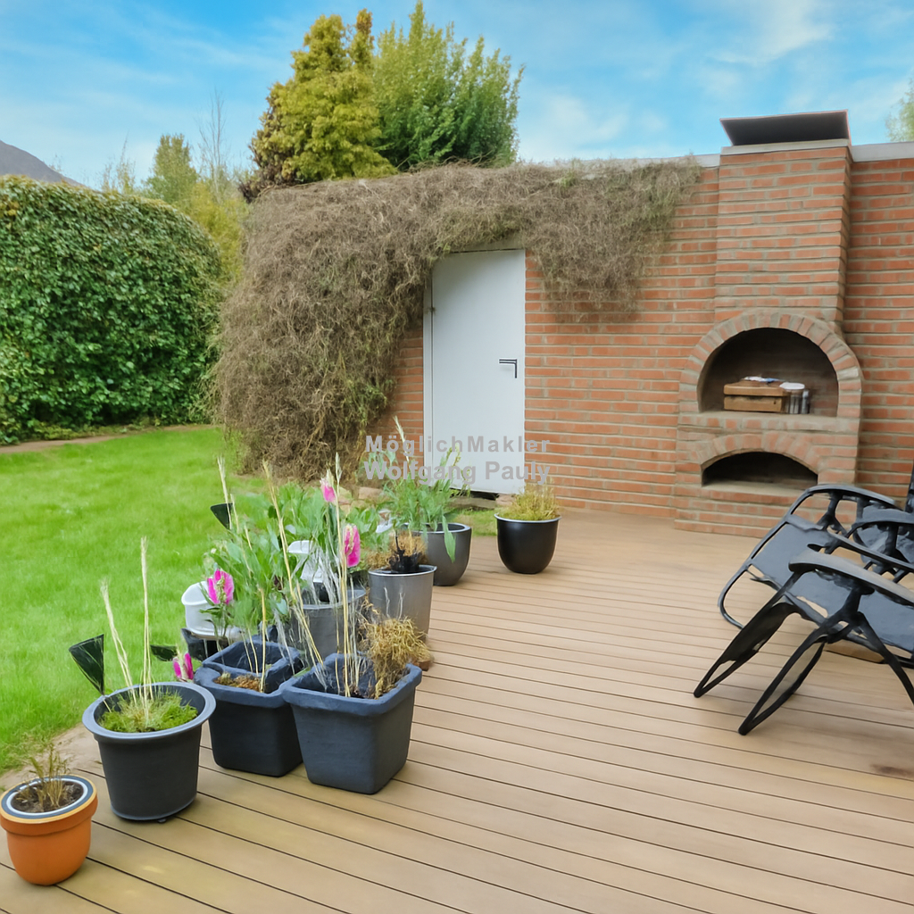 Der Wohn-und Essbereich mit seinen rund 40 m², der mit einer charmanten Verbindungslösung punktet, wird als Mittelpunkt des Hauses durch eine sonnenrichtige Terrasse mit Bangkirai-Belag und einem Aussenkamin gekonnt erweitert, Bad/ Gäste-WC und 3 Schlafzimmer für die Familie oder einem Paar, welches Home-Office und Gästebereich benötigt, werden zusätzlich durch ein Studio ergänzt. Sollten Sie einem Hobby nachgehen, ist im UG eine kleine Oase mit 28 m² zur Verwirklich Ihrer Wünsche vorhanden. Heute wird es viel und gerne für Spiel und Spaß benutzt.